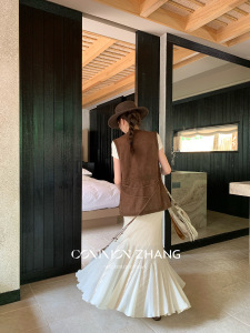 CZ ZHANG秋名媛风网纱拼接鱼尾半身裙女高腰修身包臀一步裙B32673