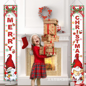 亚马逊新款圣诞节庆典派对装饰对联门挂欧美圣诞侏儒老人门帘对联