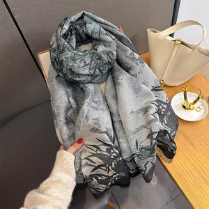 秋季新款植物花卉提花围巾女士百搭保暖仿羊绒围脖多功能外搭披肩
