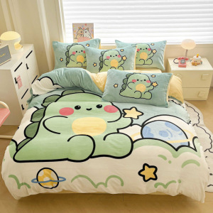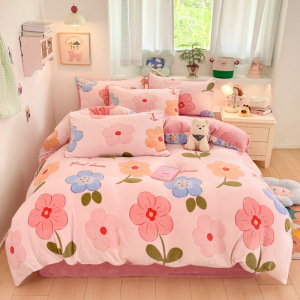 牛奶绒四件套双面珊瑚绒床笠冬季加厚被罩床单被套学生宿舍三件套