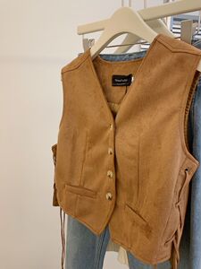美拉德风穿搭系带麂皮绒马甲女秋设计感小众休闲短款v领坎肩背心