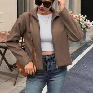 2025跨境欧美女装街头复古时尚休闲秋冬夹克落肩翻领纯色女式外套