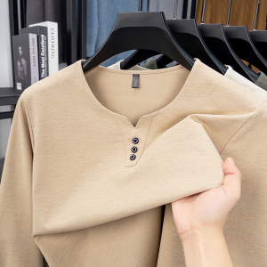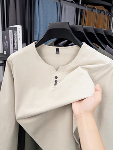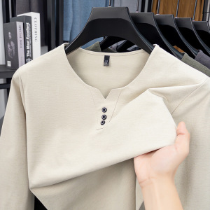 跨境外贸长袖T恤男士秋季新款休闲百搭V领时尚中年打底衫上衣批发