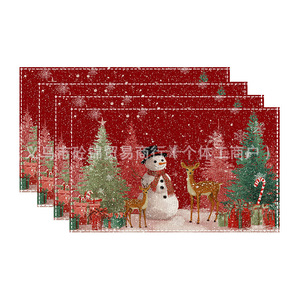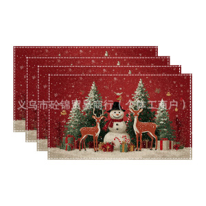 亚马逊跨境新款圣诞餐垫亚麻数码印花工艺源头工厂批发
