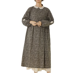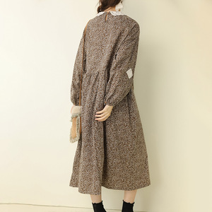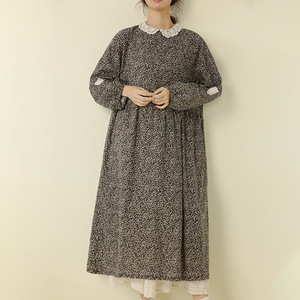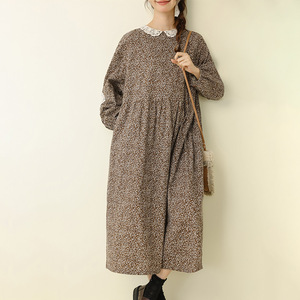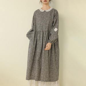 甜美森女减龄勾花娃娃领长袖连衣裙宽松百搭文艺碎花套头长裙新款