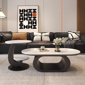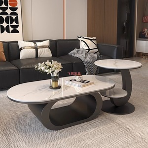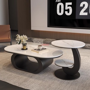 A现代简约椭圆形岩板茶几客厅小户型家用极简茶桌创意异形组合