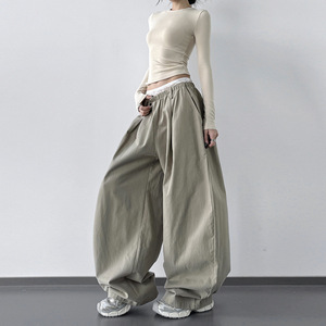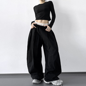 2025超火秋装新款蕾丝休闲裤女早秋时髦韩系百搭宽松bf休闲直筒裤