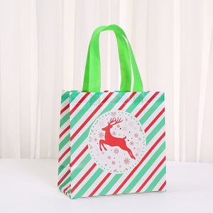 新款热卖无纺布袋圣诞节系列麋鹿蝴蝶结印花手提袋可爱小清新礼袋