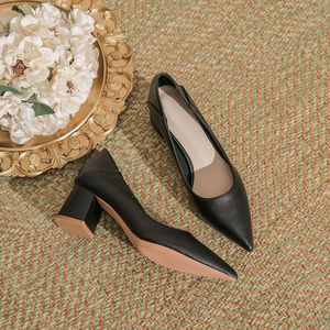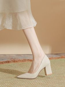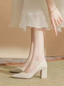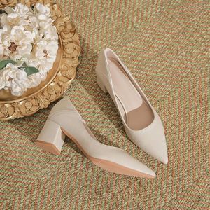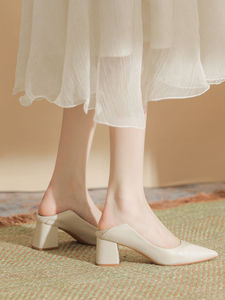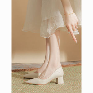 法式裸色高跟鞋女2025年新款气质软皮5厘米不累脚粗跟浅口单鞋女