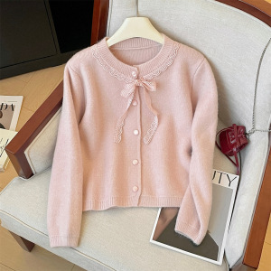 拼接针织开衫甜美蕾丝拼接气质洋气女秋冬新款温柔风显瘦短款上衣