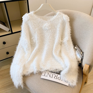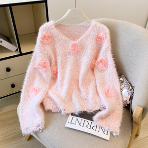 立体花朵毛衣女秋冬季温柔风甜美粉色内搭软糯针织打底衫