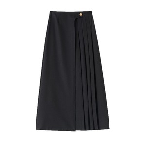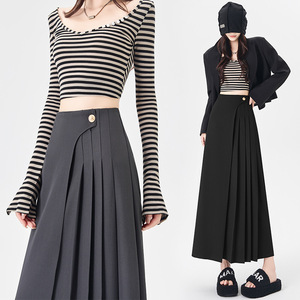 百褶拼接西装半身裙女2025秋季高腰显瘦a字压褶直筒中长款包臀裙