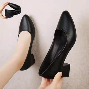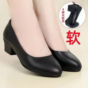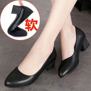 空姐久站工作鞋黑色面试工装职业鞋软底皮鞋高跟粗跟单鞋女鞋春秋