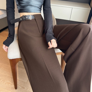 拉夏贝尔高级感垂顺直筒西装裤女春秋新款美拉德设计感腰带阔腿裤