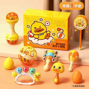 小黄鸭婴儿玩具0一1岁旋转摇铃套装新生宝宝安抚手拿手握智力可爱
