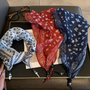 波西米亚复古碎花腰带丝巾女2025新款高级感绑发时尚领巾配饰批发