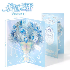芯陌永恒之绊3D立体花束贺卡跨境优选英文内页封面烫银节日祝福卡