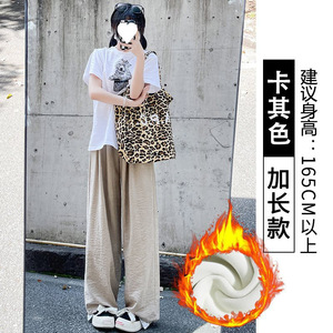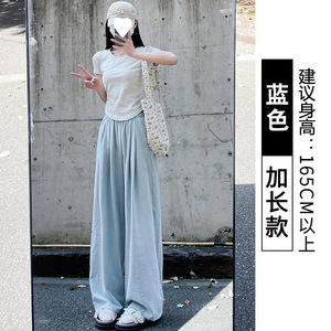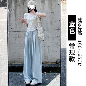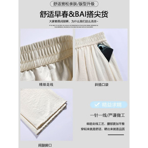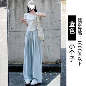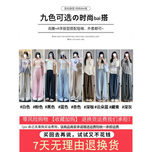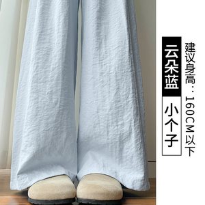 白色奶芙山本裤女夏季薄2025新款高腰休闲小个子肌理感冰丝阔腿裤