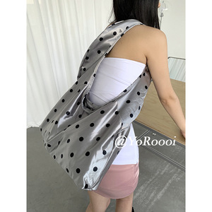 韩版新款小众设计银灰色波点缎面托特包百搭通勤单肩包腋下包包女