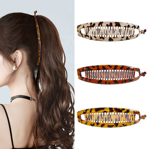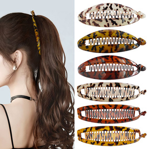 跨境新款PC料马尾香蕉夹豹纹色大号竖夹发夹女后脑勺高级感扭扭夹