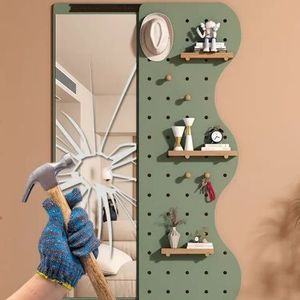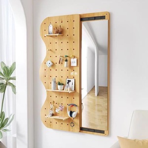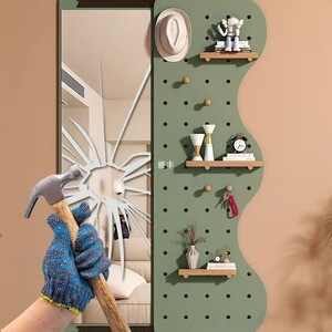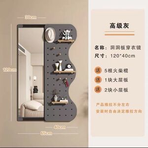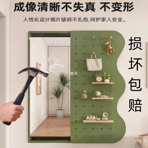 全实木洞洞板全身镜子挂墙隐形穿衣镜女生卧室化妆风挂衣帽架镜子