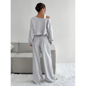 2025新款女士休闲裤跨境速卖通简约前系带运动卫裤宽松阔腿长裤子