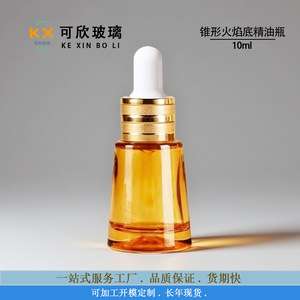 新款10ml锥形火焰底滴管精油瓶精华液玻璃瓶按压原液瓶化妆品分装