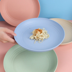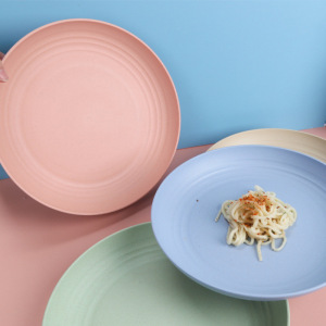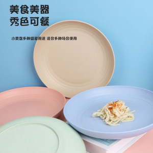 亚马逊热卖小麦秸秆25cm菜盘子家用塑料加厚北欧风大号圆形餐盘子