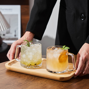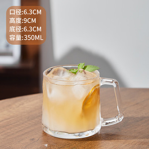 ins带把手玻璃杯茶水杯家用创意带把手高颜值透明冰咖啡杯马克杯