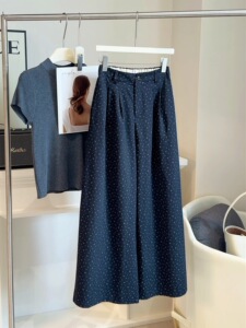 复古碎花宽松慵懒风阔腿休闲裤女2025秋新款天丝棉直筒显瘦梧桐裤