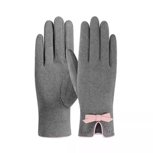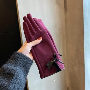手套女冬季不倒绒手套冬蝴蝶结加绒触屏保暖抓绒骑行开车女士手套
