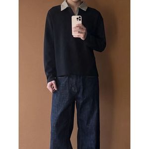 老钱风长袖T恤男女款夏季拼接polo领感cleanfit打底衫