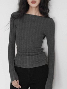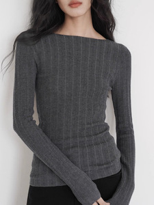 EIGHTHMONT 灰色针织打底衫女2025秋季新款微透修身小众毛衣上衣