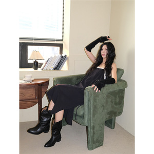 皱褶堆堆短靴女黑色复古西部牛仔靴粗跟刺绣骑士靴真皮尖头套筒靴