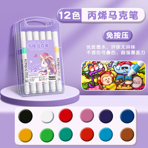 丙烯马克笔小学生美术可水洗不透色可叠色彩笔24彩色笔速
