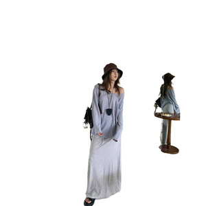 秋季新款松弛慵懒T恤斜肩防晒衫女+休闲半身裙高腰显瘦长裙套装女