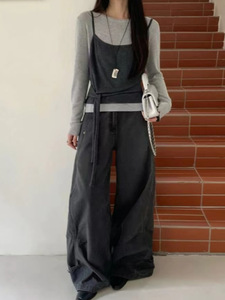 简约慵懒绑带假两件套2025秋休闲气质修身小众温柔长袖打底上衣