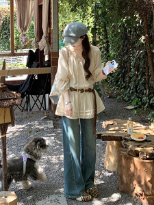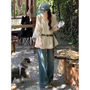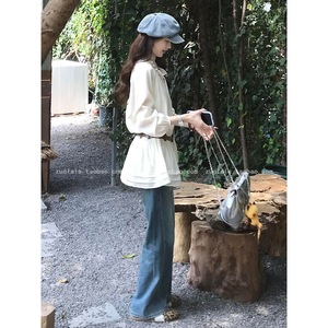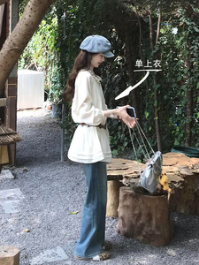初秋穿搭一整套大码胖mm雪纺上衣牛仔阔腿裤韩系温柔气质减龄套装