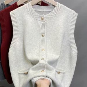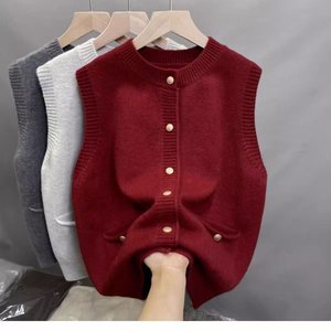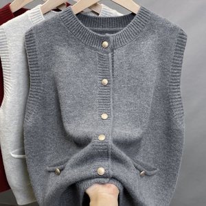圆领针织马甲女2025秋新款圆领坎肩外搭无袖毛衣开衫叠穿软糯上衣