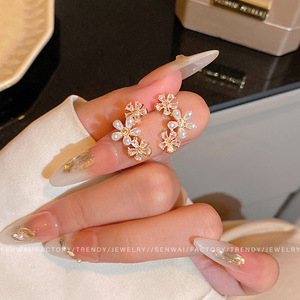 微镶锆石珍珠花朵耳环女小众设计高级感耳钉气质甜美百搭耳饰批发