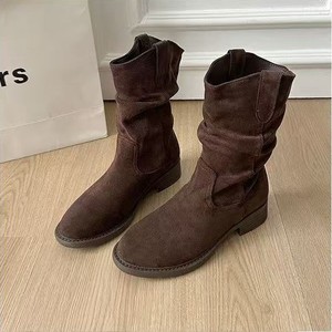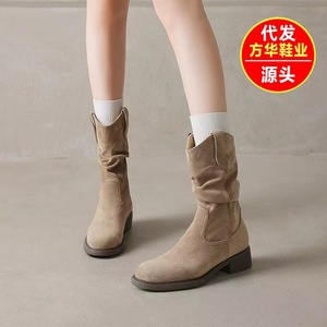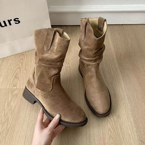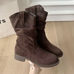 粗跟复古风中筒靴马丁靴女鞋2025新款秋冬季堆堆马丁靴