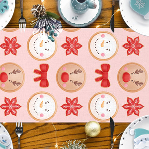 新款跨境圣诞节粉色姜饼人桌旗圣诞节日派对气氛装饰桌布亚麻桌垫