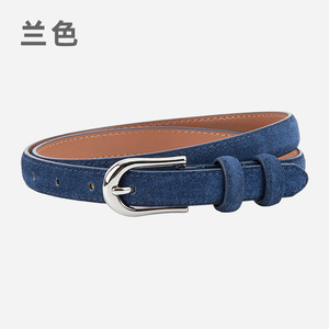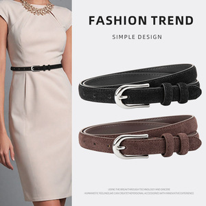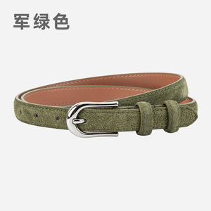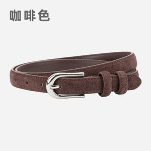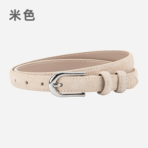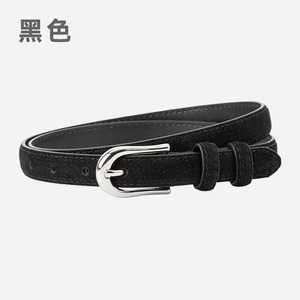 磨砂绒面真皮细款小皮带女士百搭复古风连衣裙配饰高级牛皮腰带女