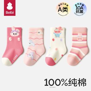贝比新生婴儿袜子春秋冬季纯棉a类抗菌袜儿童袜子女宝宝中筒袜子