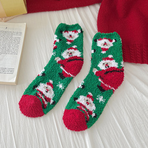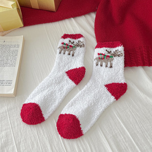 红色圣诞袜珊瑚绒袜子秋冬女款中筒加厚保暖雪地靴袜地板袜睡眠袜