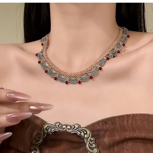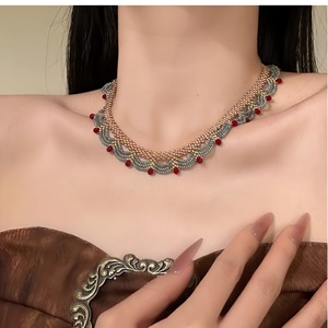 2025新款复古红蓝撞色串珠choker新中式古着项链女国风锁骨链颈链