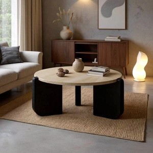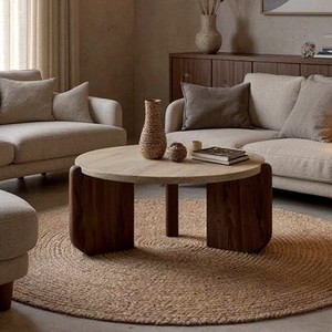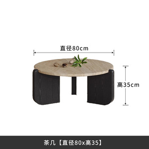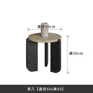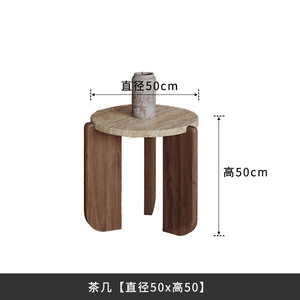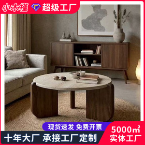 侘寂风天然洞石茶几客厅家用极简大小户型圆形实木边几角几设计师