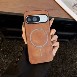 适用谷歌Pixel 10疯马纹细圈磁吸手机壳pixel6a/7/8/9A皮革保护套
