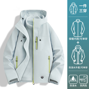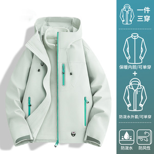 啄木鸟黄色冲锋衣女2025新款三合一可拆卸户外防风防水登山服外套