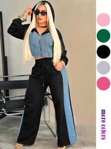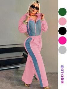 Z4533 代发速卖通亚马逊跨境新款男式休闲运动套装女式拼接落